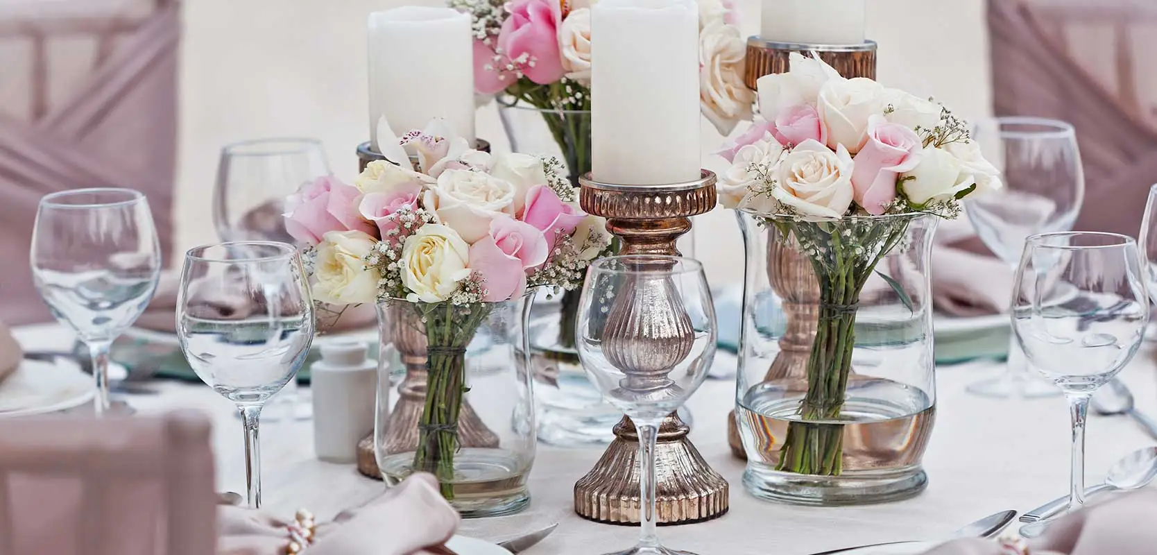 - 3 Pedestal Candle Holders with Candles