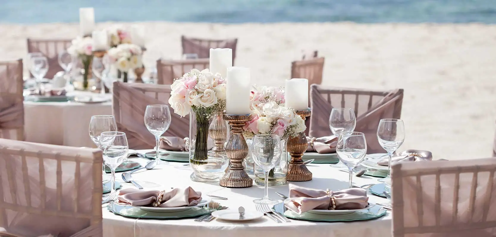 You've tied the knot, and now it is time to celebrate in paradise with the ones you love most. Follow your Pure Glamour ceremony with a carefully coordinated reception. Each detail has been perfectly paired, from the sparkling ivory table linens to the pearled napkin rings and mirrored charger plates. Add a delicious chef inspired four-course menu, pair it with Jackson Family Wines, and your private reception will transcend even your highest expectations.
